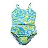 Girlfriends by Anita G Designer Clothes - Girls 2 Piece Swirl Tankini Bathing Suit, Blue, Lime (Size 5) : Suit Sizes